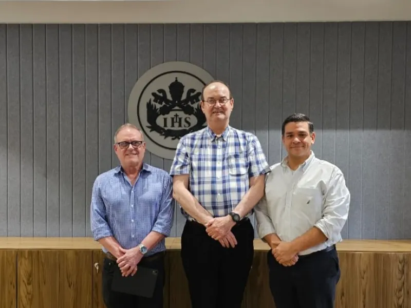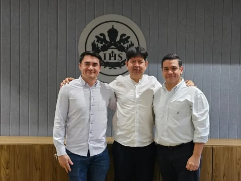 En la foto de izquierda a derecha: Padre Luis Alfonso Castellanos, S.J., Héctor Mauricio Benavides, Pablo Cesar Gómez, Andrés Sandoval Sarrias, Joaquín Eduardo Llorca, Padre Vicente Durán Casas, S.J., Patricia López Ramírez, Mauricio de Miranda, Pablo Rubén Vernaza, Guillermo Adrián Rivera y José Luis Duque.