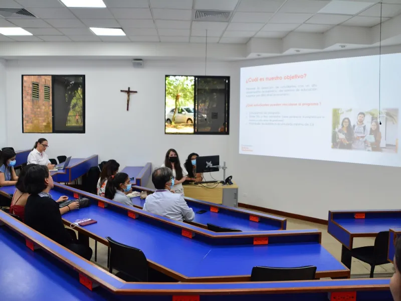 En un significativo acto de socialización, estudiantes javerianos de diferentes carreras participaron en la formalización de la entrega de la beca Fundación Bolívar Davivienda (FBD), un convenio de donación que se oficializó entre ambas instituciones desde el 2020, y que a la fecha se han beneficiado 48 estudiantes. Esta beca, hoy llamada 'Crédito al talento', está dirigido a estudiantes que estén cursando entre 5° y 8° semestre, de estratos 1, 2 y 3, y que presentan condiciones de vulnerabilidad que colocan en peligro la terminación de su programa académico.