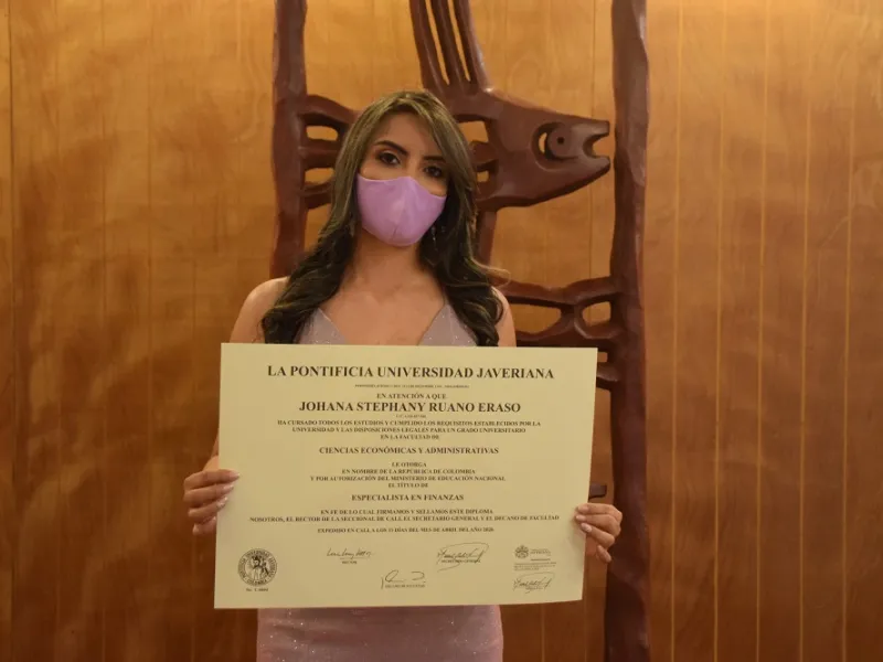 Desde el viernes anterior, la Universidad dispuso del auditorio Alfonso Borrero Cabal S.J. para que los estudiantes graduados asistan con dos acompañantes para la toma de la foto junto al rector y el decano de la respectiva facultad. Esta iniciativa invita a los graduandos a tener un recuerdo de un grado atípico pero que muchos quieren tener en la memoria una fotografía de un momento especial. Aquí compartimos algunas: