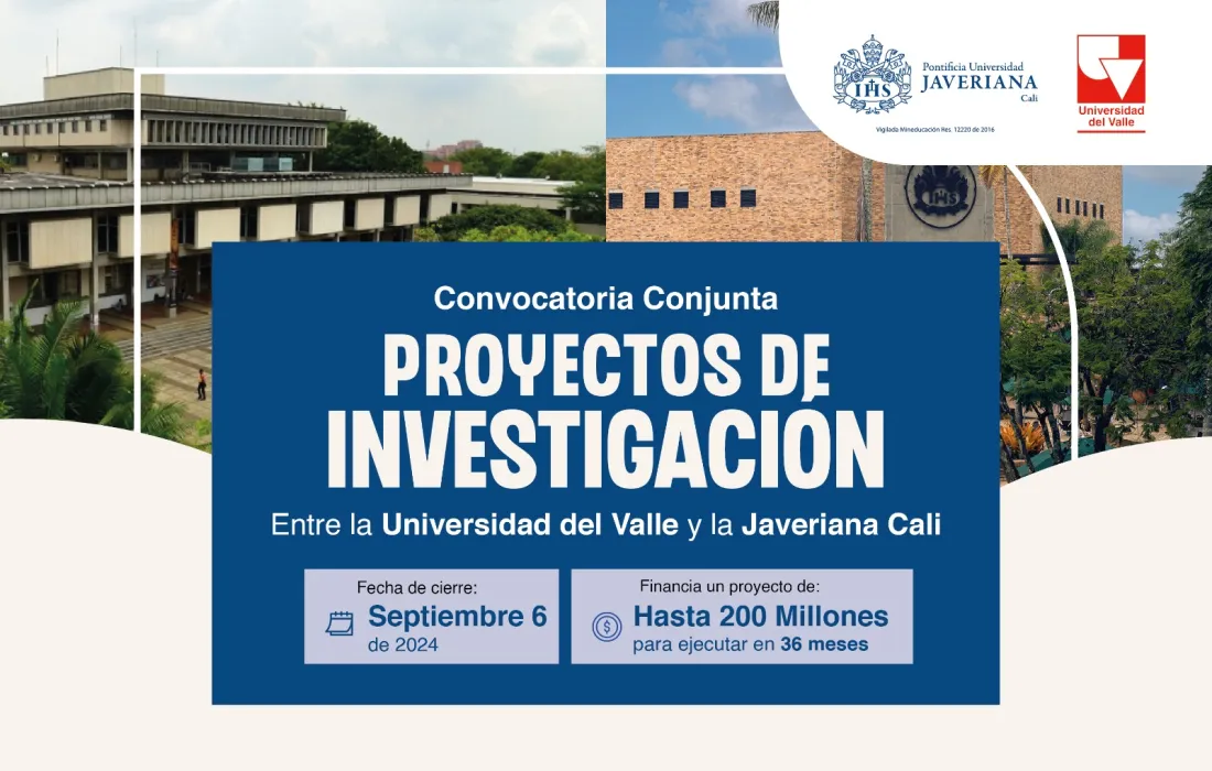 La Universidad del Valle y la Pontificia Universidad Javeriana Cali se unen para apoyar proyectos de investigación e innovación destinados a enfrentar los grandes retos de la región. La convocatoria financiará un proyecto de hasta 200 millones de pesos y estará abierta hasta el 6 de septiembre de 2024.