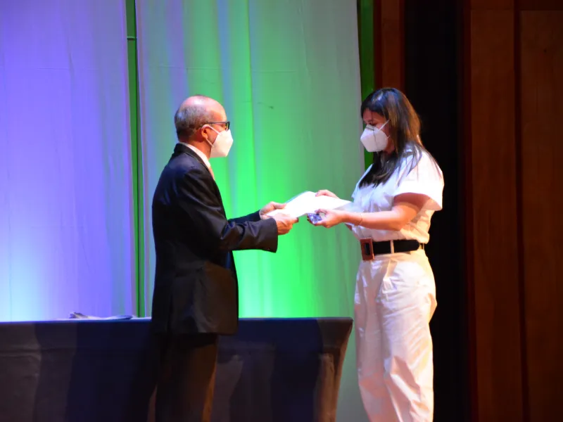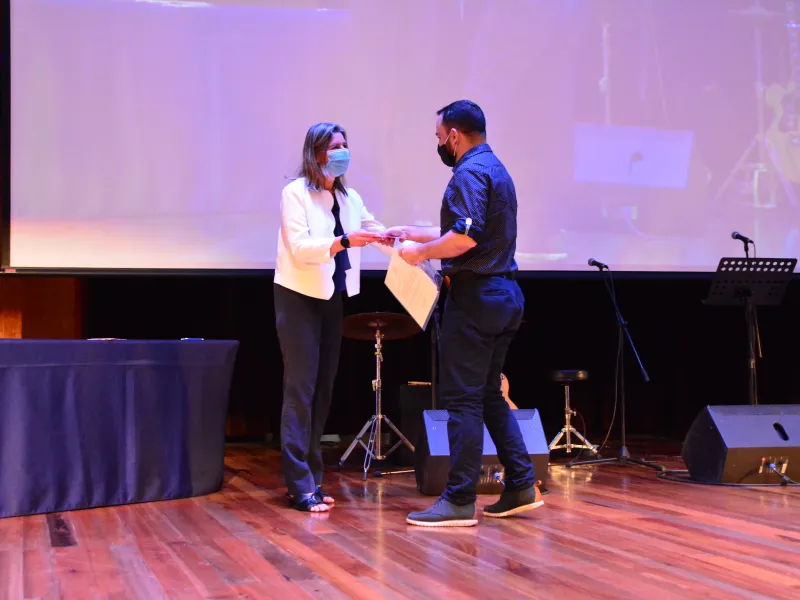 Como cierre de la ceremonia se realizó una muestra cultural a cargo de la estudiante de la carrera de Psicología, María Antonia Chagüendo, quien presentó una propuesta musical especialmente para todos los profesores.