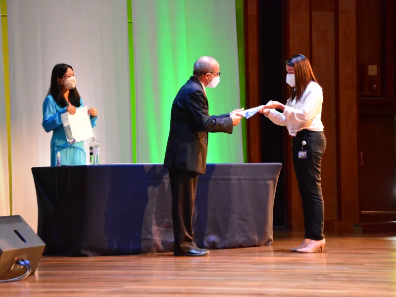 Cabe destacar que la ceremonia se realizó con parte del cuerpo de profesores presente en el auditorio Alfonso Borrero Cabal S.J., siguiendo todas las medidas de prevención.